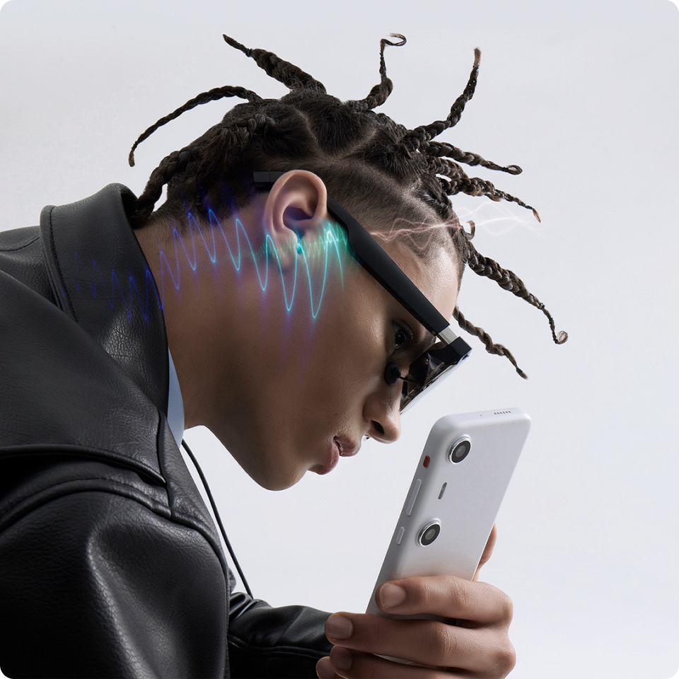 • Private Audio, Rich Sound: Built-in directional stereo speakers deliver immersive sound while minimising audio leakage. Two microphones ensure clear voice input, whether you're in a call or issuing commands.